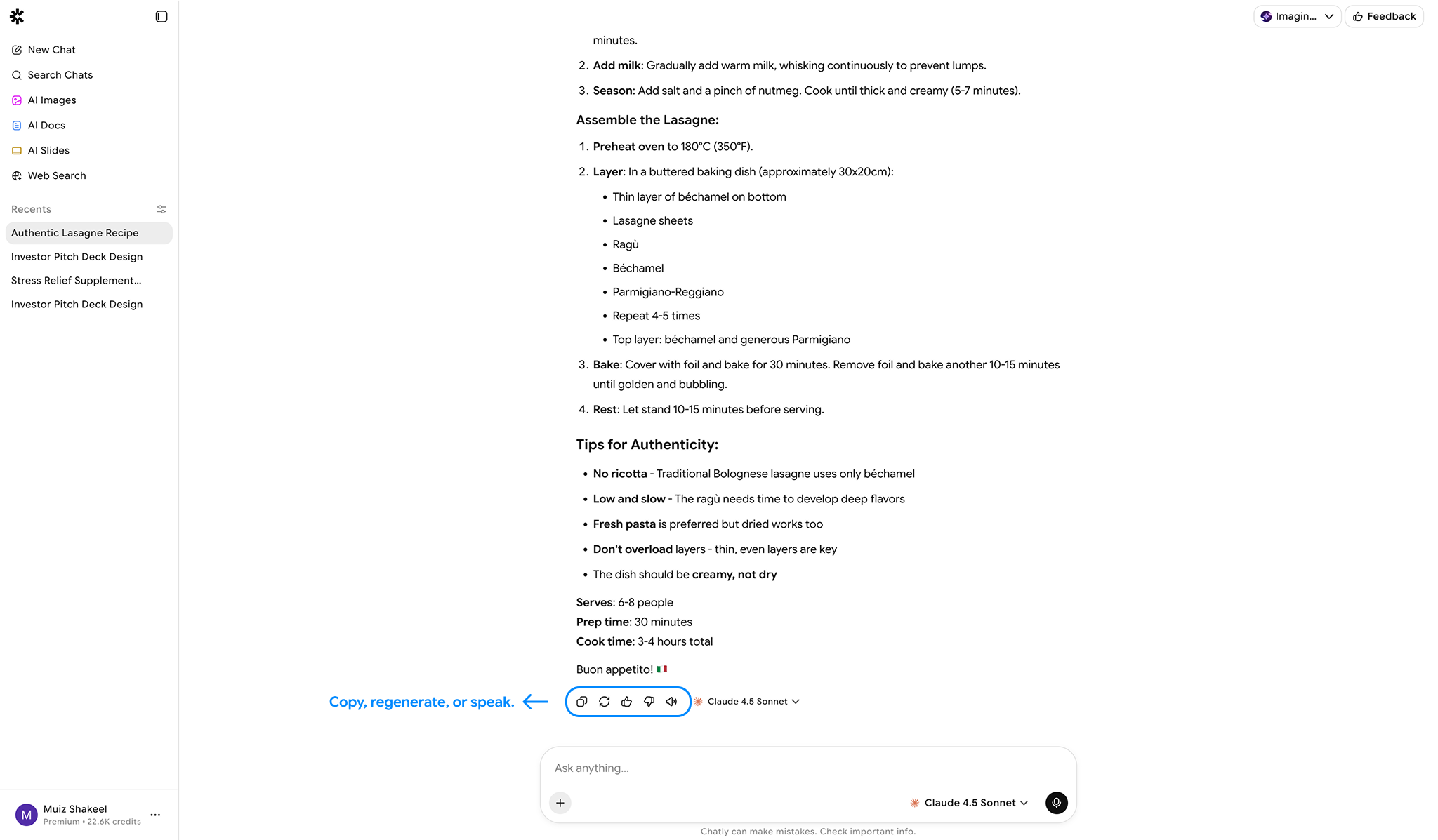 Copy your responses, regenerate them, provide feedback, or even read the response aloud using our Text to Speech facility.