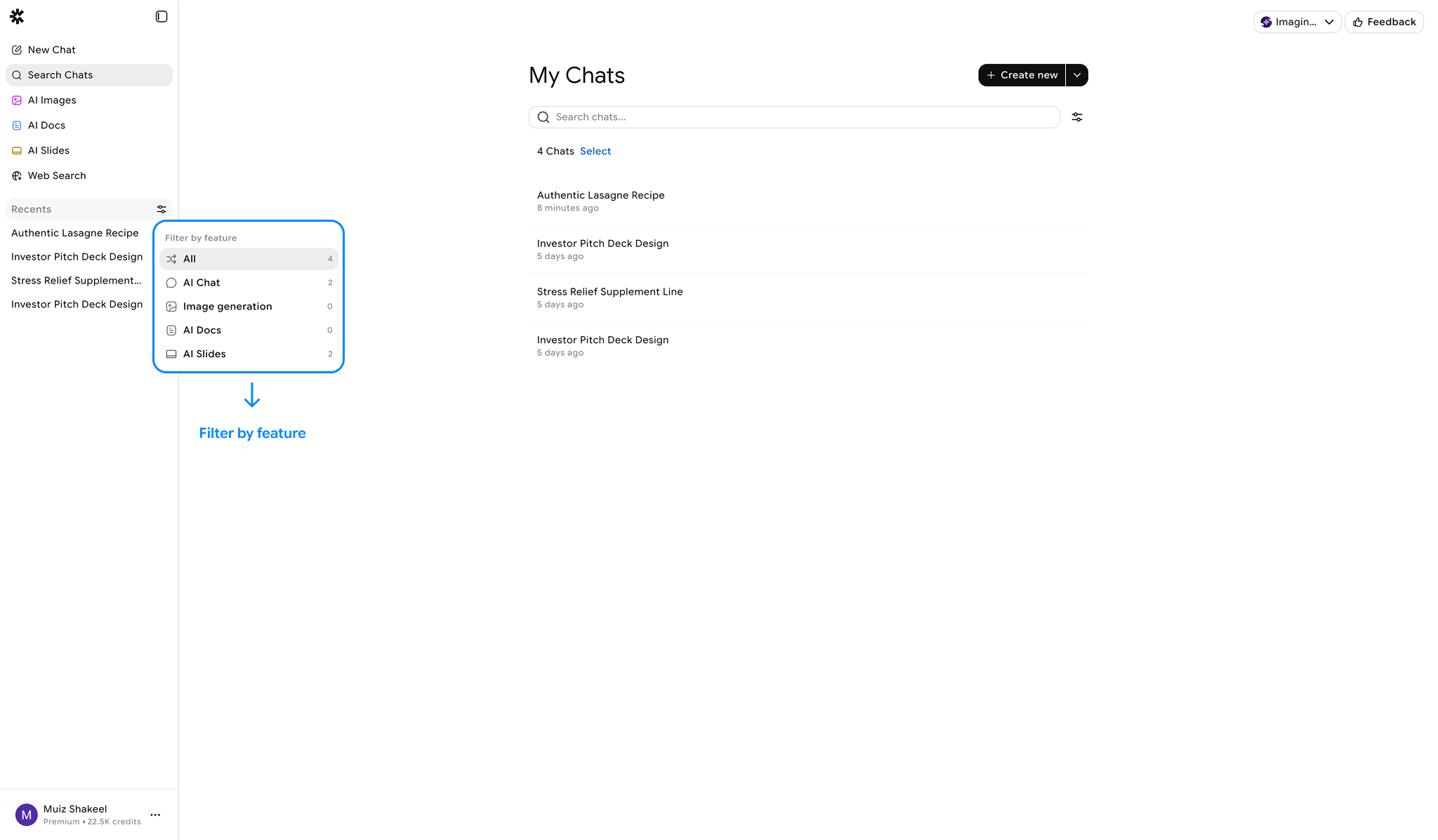 Click on three dots in Chat history to Pin, Delete or Rename chat item.