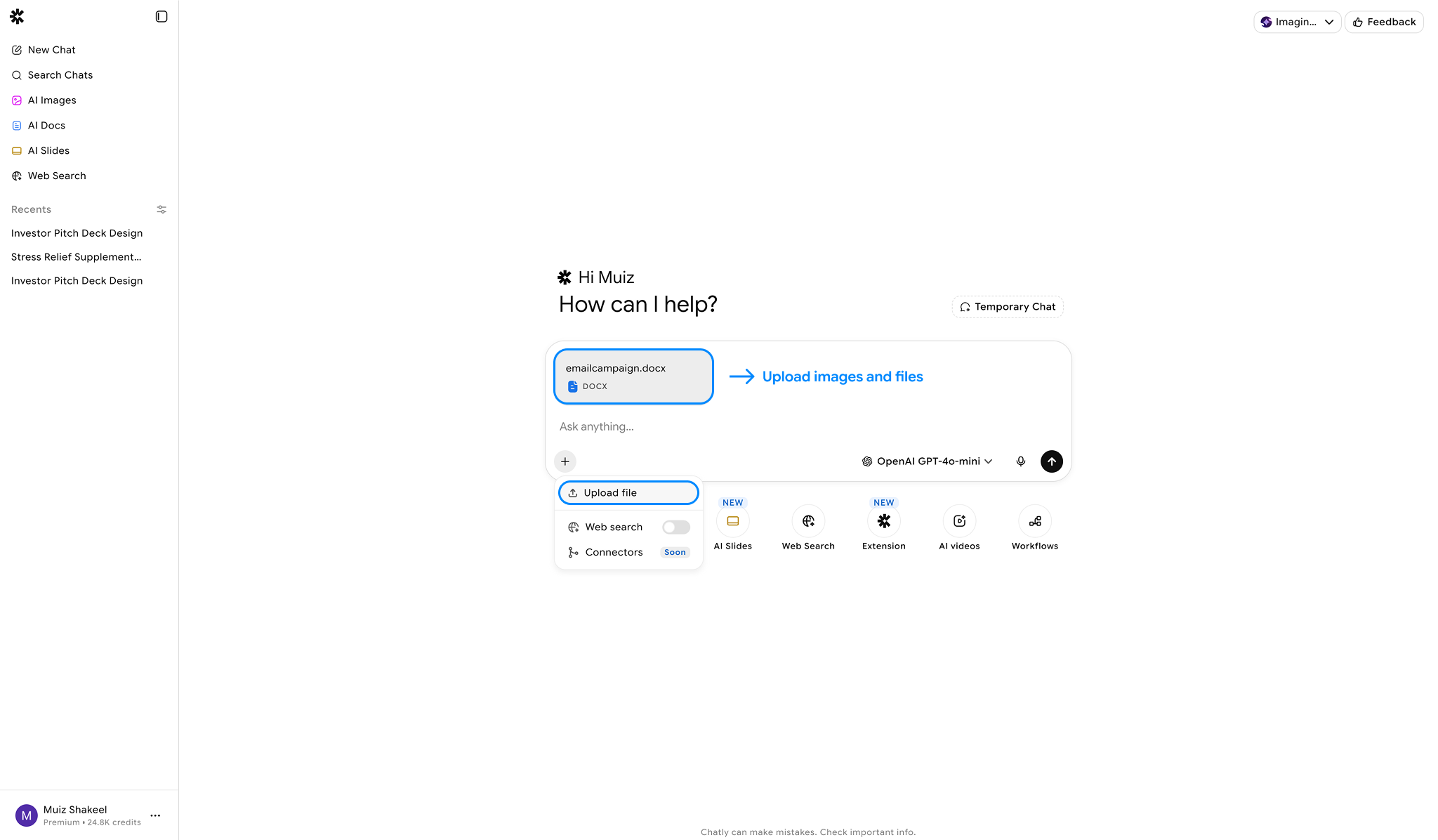 * Supported file types: .jpg, .jpeg, .png, .gif, .webp, .pdf, .txt, .csv, .json, .md, .html, .docx, .pptx, .xlsx, .epub